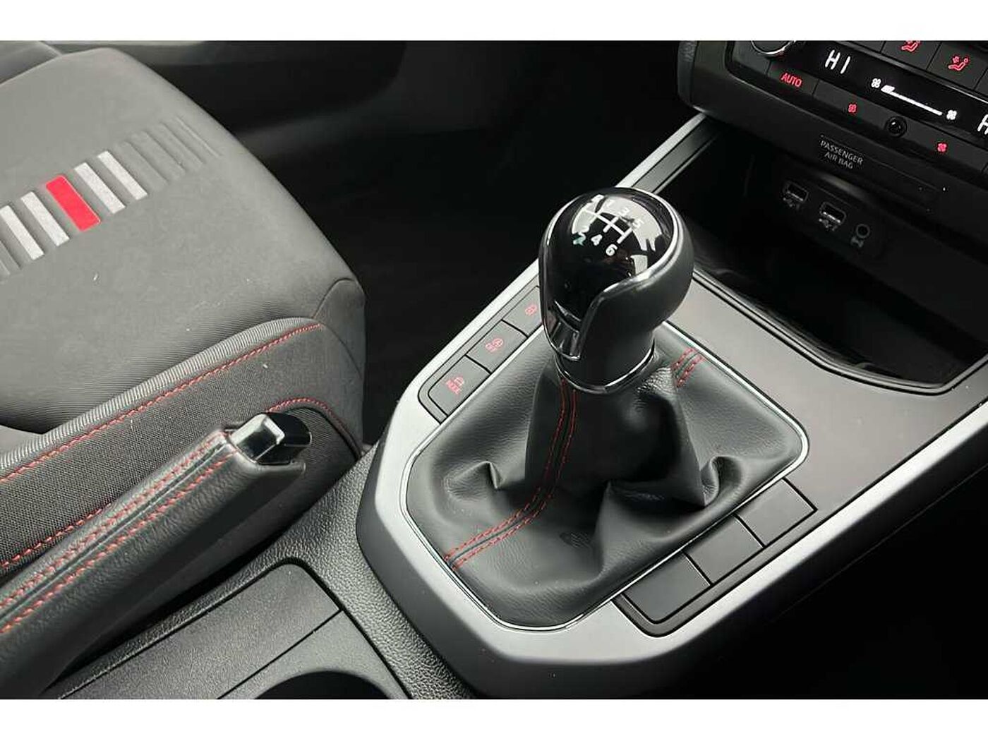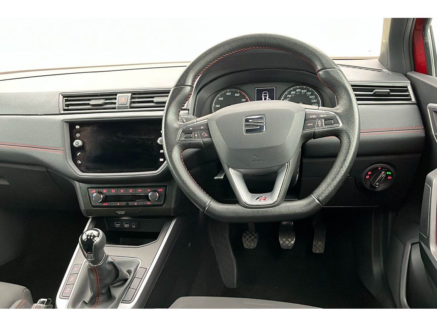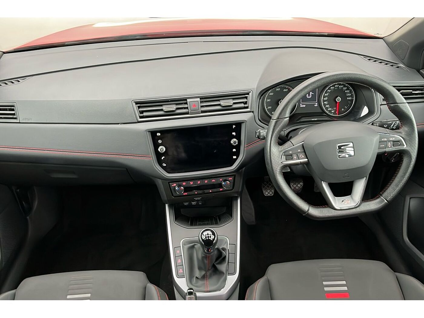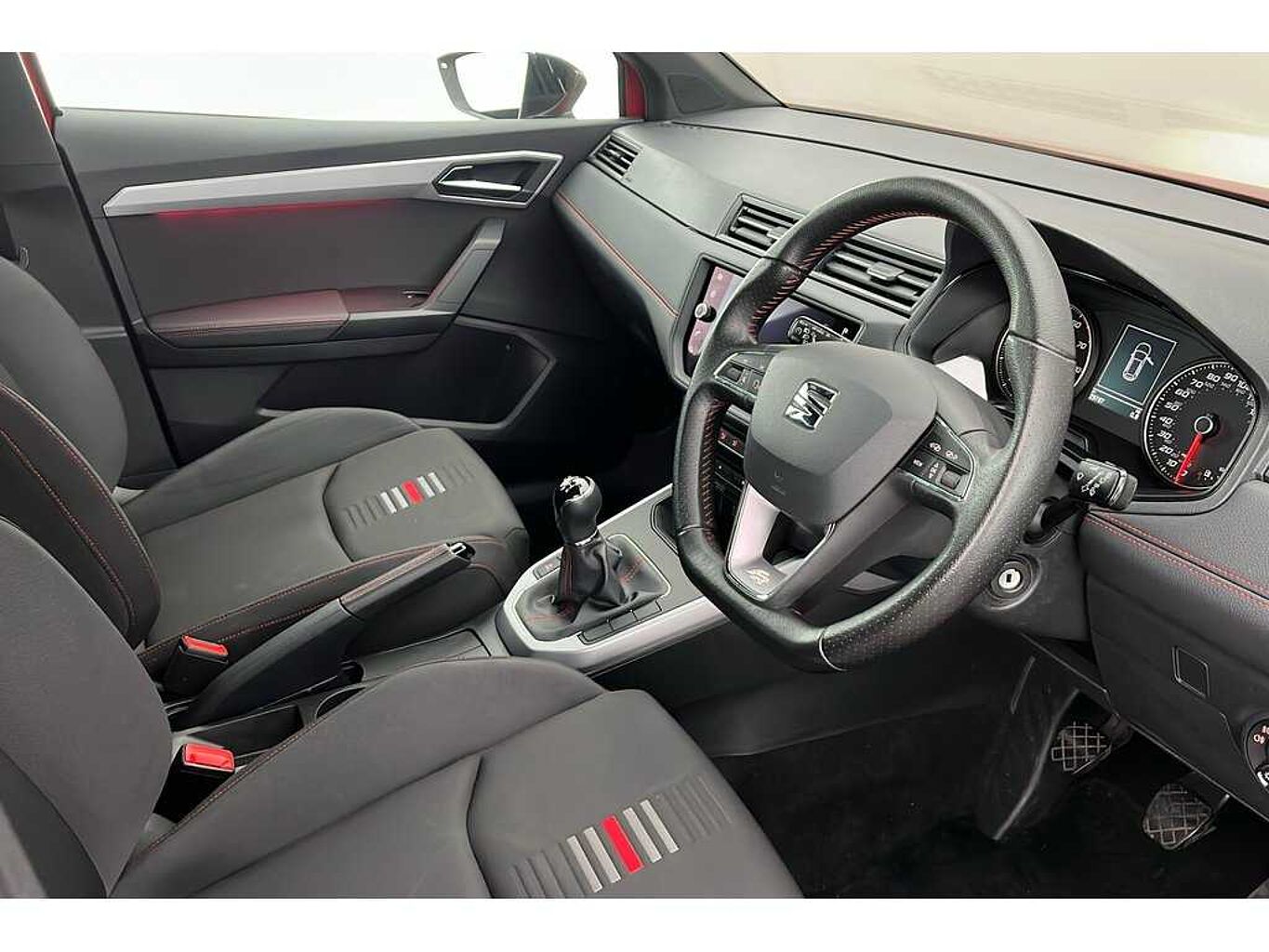 - Perforated Leather Flat-Bottomed Steering Wheel with Red Stitching and FR Logo with Leather Gear Knob and Handbrake
